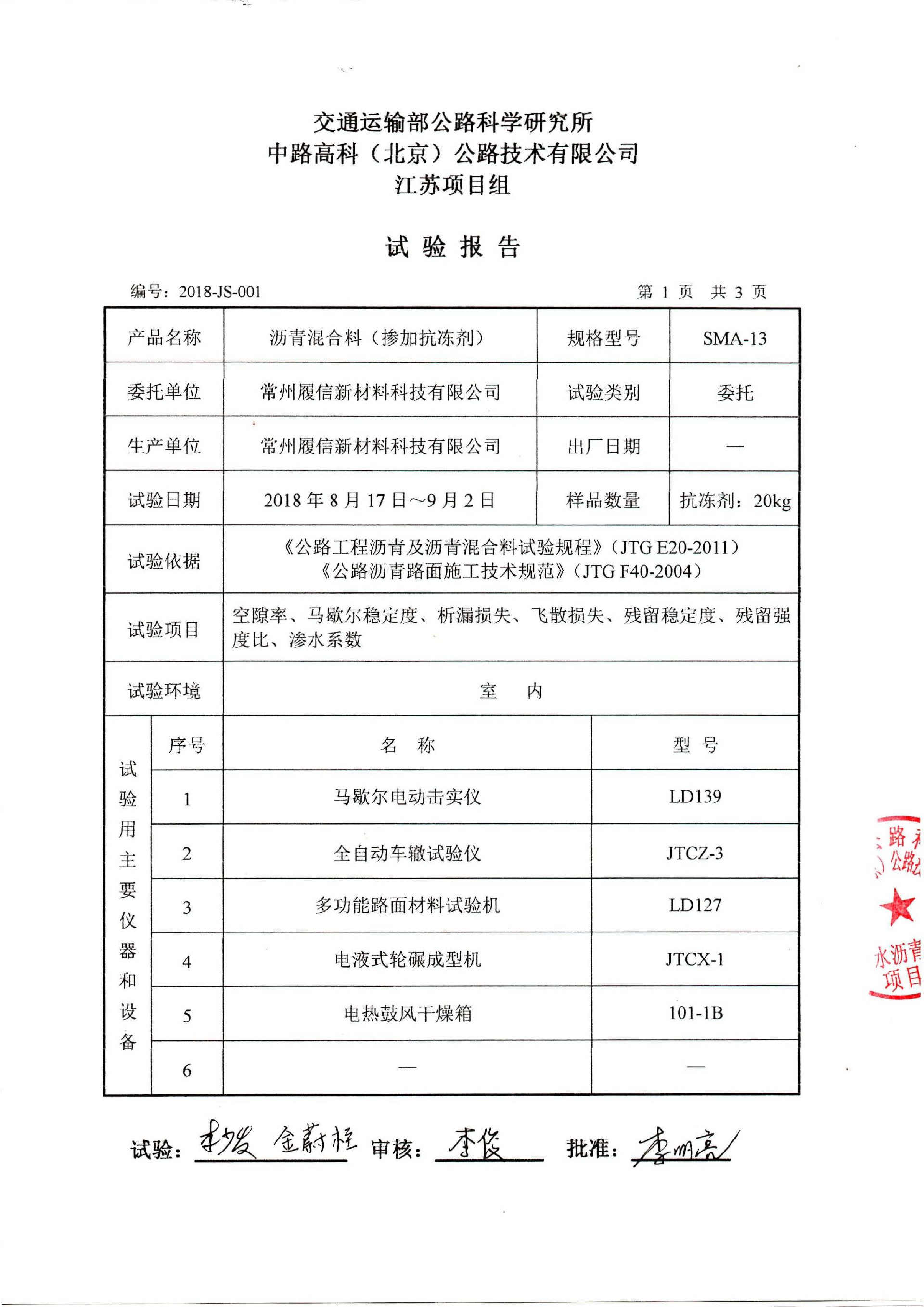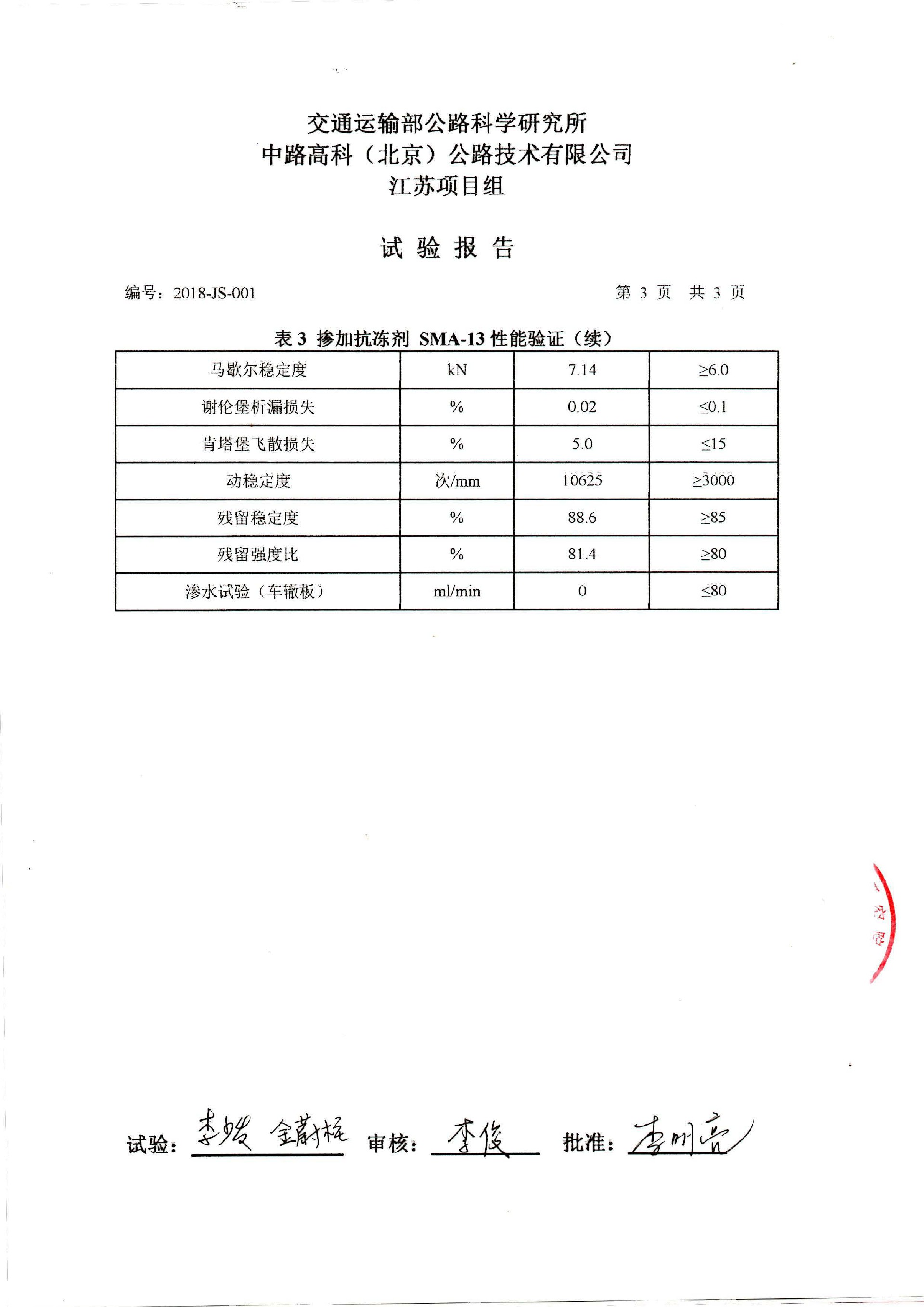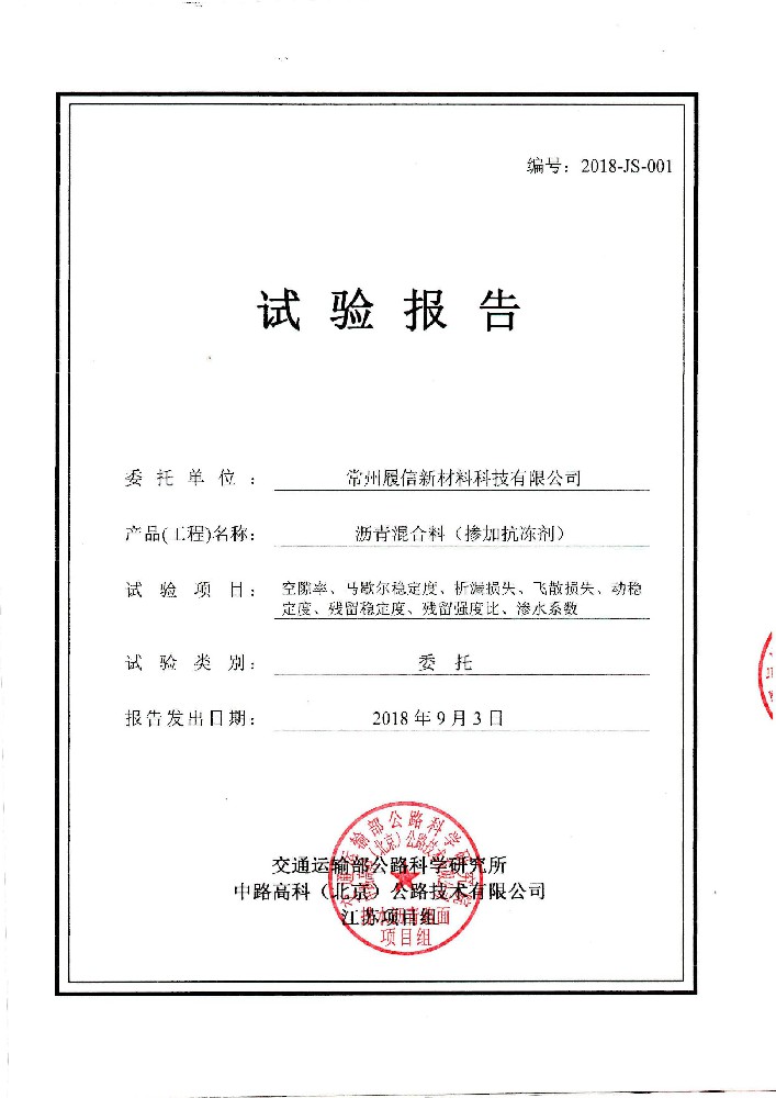 抗凝冰瀝青試件交通部公路科學(xué)研究所檢測報(bào)告